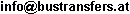 Bustransfers.at est une offre en ligne proposée par le tour opérateur City Tours Autriche. Tous les transferts en bus imaginables en Autriche sont possibles, du transfert en ville en bus ou minibus en passant par les transferts de et vers l'aéroport ainsi que les transferts à l'étranger, ou encore les transferts longue distance, le tout dans des cars sûrs et confortables.